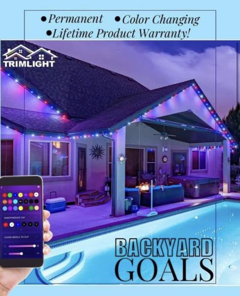 Trimlight provides elegant backyard lighting for patios, pergolas, awnings, deck railings, outdoor kitchens and more. With the user friendly app homeowners can program lighting for every holiday, sporting event and special occasion or set the lights to a warm, ambient setting for enjoyment all year long.